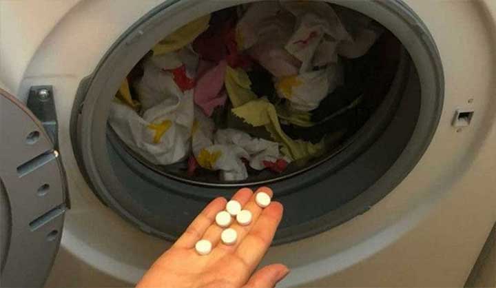 Souvent nos chemises blanches gardent des taches jaunâtres au niveau des aisselles. Ces dernières ne sont pas nécessairement dues à la seule transpiration mais également à l’aluminium contenu dans les déodorants. Cette combinaison renforce la résistance de ces taches à l’eau, d’où la difficulté de s’en débarrasser. A cet effet, jetez cinq comprimés d’aspirine, préalablement écrasés dans votre lave-linge, et mettez la machine en marche. Les taches jaunâtres auront disparu à la fin du lavage.