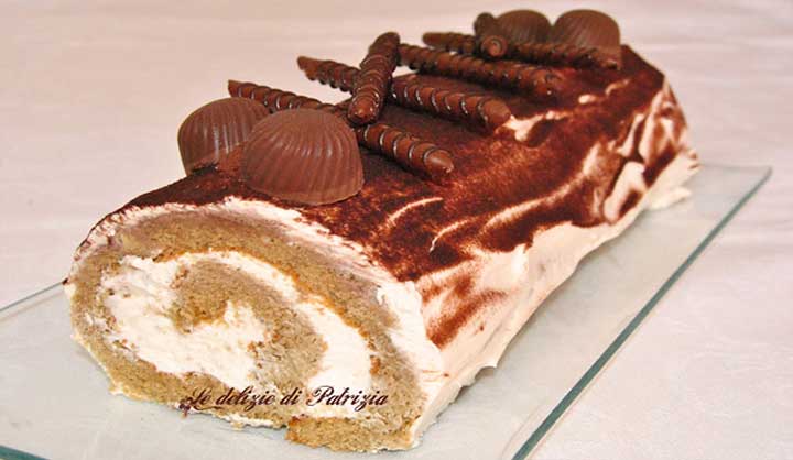 Déroulez la bûche, remplissez toute la surface avec la crème puis roulez-la à nouveau et recouvrez-la de la garniture avancée.