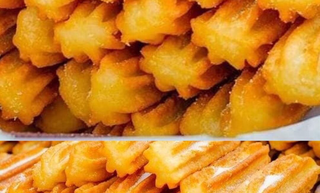Verser la pâte dans une poche à douille. Pipez la pâte directement dans l’huile en segments de 5 à 6 pouces. Couper la pâte avec des ciseaux ou un couteau bien aiguisé pour former les churros individuels.