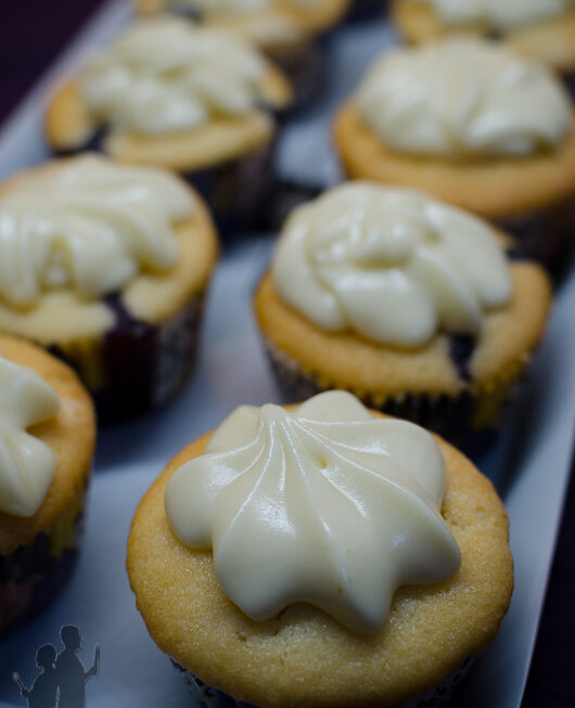 – remplir la moitié de chaque caissette de pâte à cupcakes ;