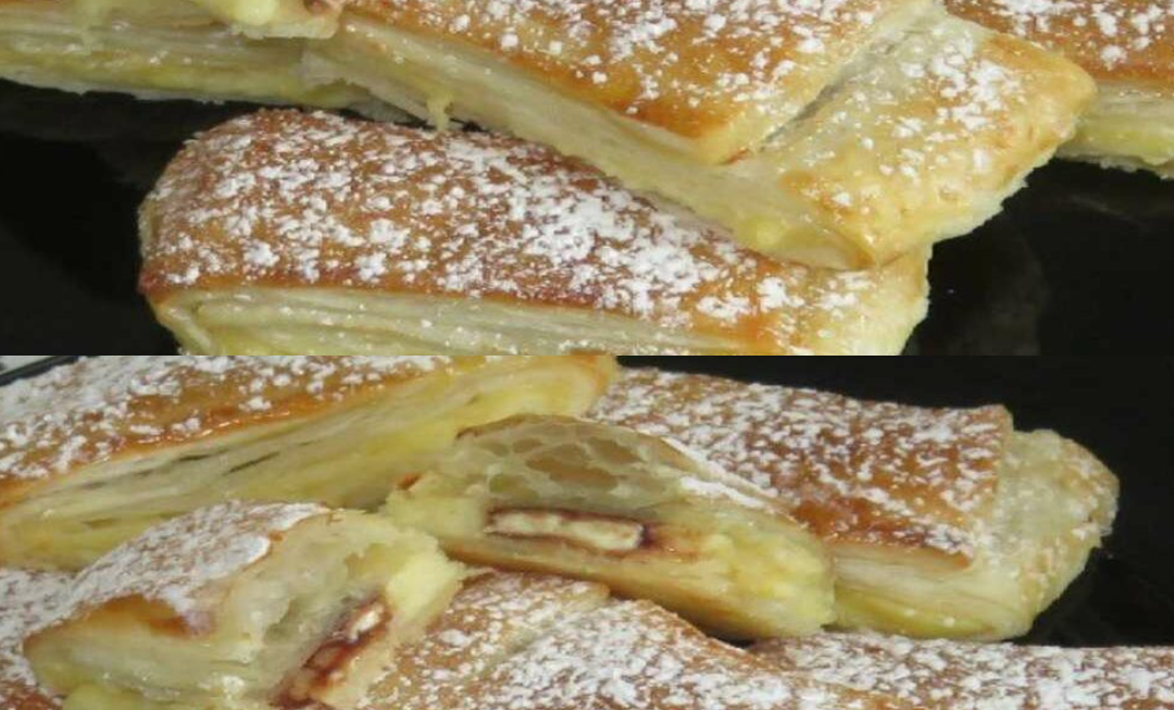 J’offre cette recette aux amateurs de l’originalité, à ceux qu’ils y aiment toujours le réconfort apporté par un Feuilleté à la crème pâtissière et aux amandes, un cake très facile et vraiment savoureux, il est préparé en peu de temps et est vraiment appétissant, idéal pour vos gouters ou vos collations rapides.