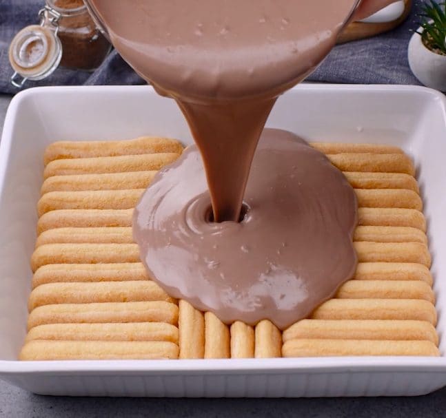 Ce dessert est parfait pour les journées chaudes où vous ne voulez pas être coincé derrière une cuisinière chaude. Les saveurs sont similaires à celles du tiramisu, avec du chocolat, des biscuits aux doigts de dame et du café. Mais sans œufs crus !