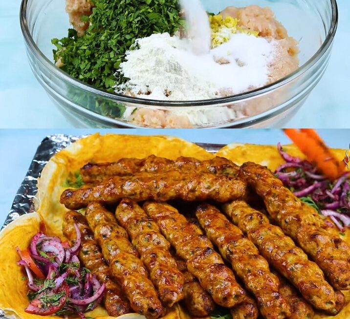 Dans un bol, mélanger le poulet haché avec 1 tasse de persil haché, 1 cuillère à café de zeste de citron, 1 cuillère à soupe de farine, du sel, 1 cuillère à soupe de paprika, 1 cuillère à café de coriandre, 1 cuillère à café d’épices variées ou sept épices, ½ cuillère à café de poivre noir.