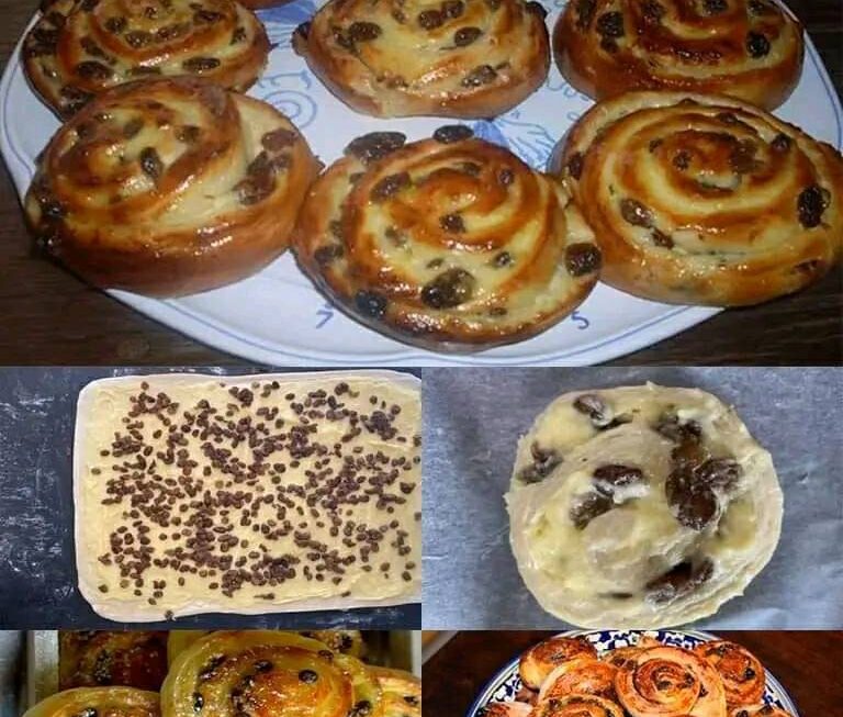 Miam!! Je vous présente des petits pains fourrés aux raisins . Une gourmandise très appréciée à la maison