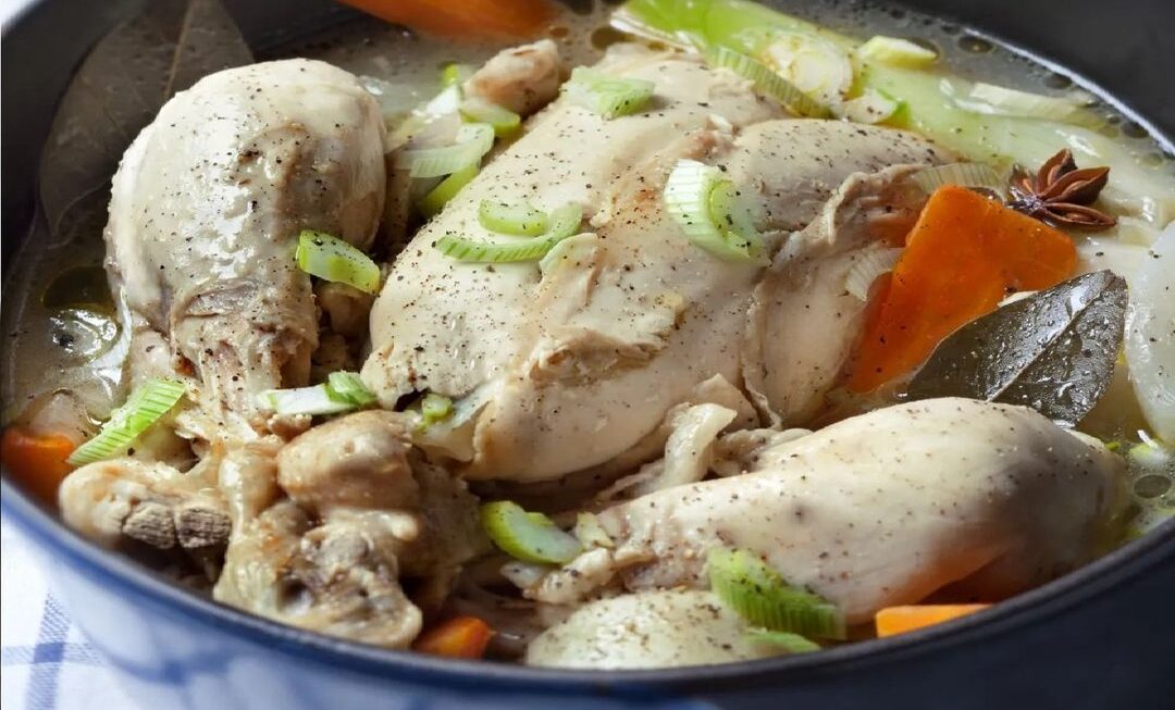 Couvrir et laisser cuire 2 h à 2 h 30. La chair de la poule doit se détacher.