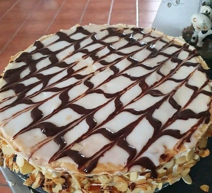 Quand tout est froid, alterner Un disque de pâte, de la crème (que vous avez refouettée), un disque de pâte, de la crème et dernièrement un disque de pâte. On peut aussi ne mettre que deux disques de pâte.