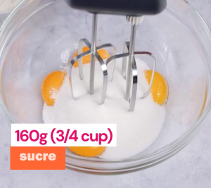 Mettre les jaunes d’œufs dans un bol propre et ajouter le sucre.