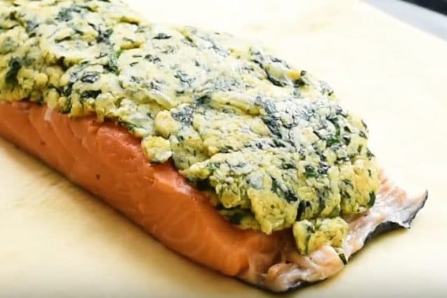La croûte de saumon peut paraître sophistiquée, mais elle n’est en fait pas si difficile à préparer. Tout d’abord, préparez le mélange d’épinards et de fromage. Commencez par faire revenir l’oignon, l’ail et les épinards hachés. Une fois les épinards fanés, ajoutez le fromage à la crème, le fromage et la chapelure et mélangez. Mettre de côté.