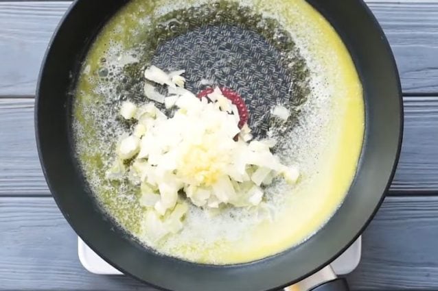 Ajouter l’ail et les oignons et cuire 3 minutes jusqu’à ce qu’ils soient tendres et parfumés.
