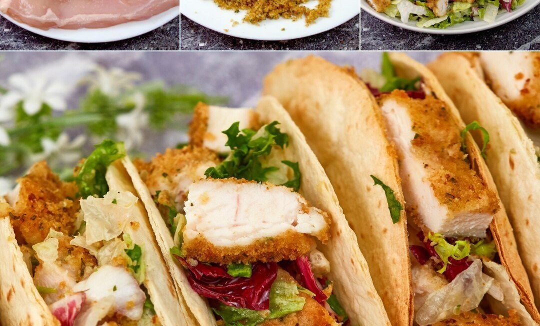 Aplatir les poitrines de poulet avec un maillet à viande pour les aplatir et les égaliser. Saler et poivrer légèrement, puis enrober d’un peu d’huile d’olive sur toute la surface.